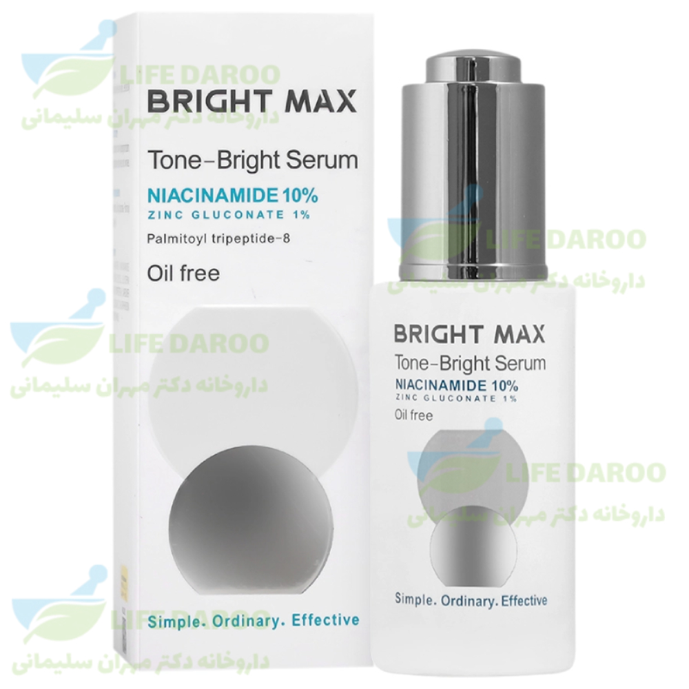 سرم تن-برایت 10 درصد برایت مکس با کاهش تیرگی لکها، کوچک کردن منافذ، تنظیم چربی پوست و کمک به کلاژن سازی موجب احیا ساختار طبیعی پوست و زیبایی آن میشود. در نظر داشته باشید سرم نیاسینامید برایت مکس برای انواع پوست به خصوص پوستهای جرب مناسب بوده و میتوان از آن به همراه سایر روتینهای درمانی استفاده نمود.